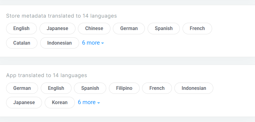 Its App Store listings are translated into 14 languages.