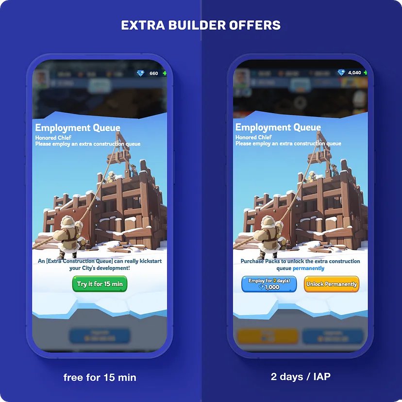The game gives you a 15-minute trial of a second worker — just enough to experience how much faster progress feels.