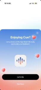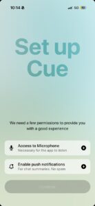 Cue’s onboarding is fast but every step builds credibility: