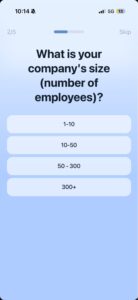 - Ends with a few quick personal + work questions