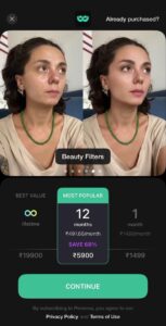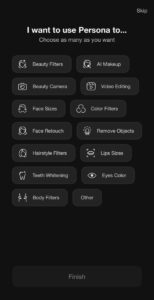Intent capture: Asks users why they’re here (beauty filters, AI makeup, photo enhancement, etc.). This shapes the experience and segments users for better upsells later.